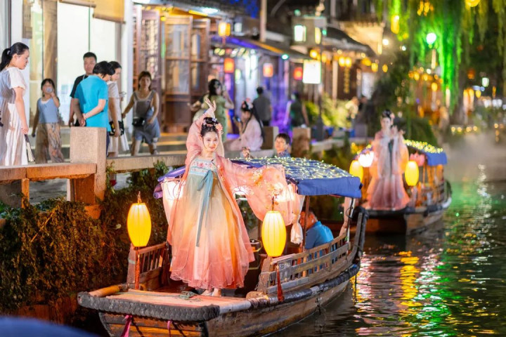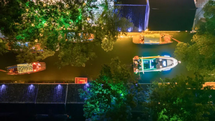 晚风吹行舟,在绕梁的余音间一起解锁夜周庄的全新体验。