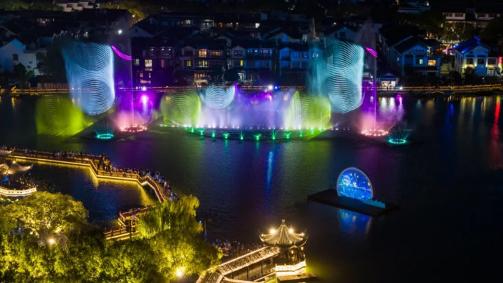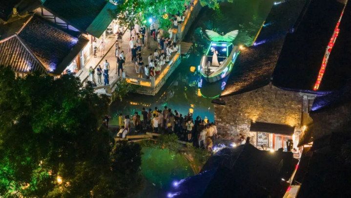 除水上音乐会这一核心项目外,自8月22日起,古镇全域上演了十余项精心排布的夜间演艺活动。